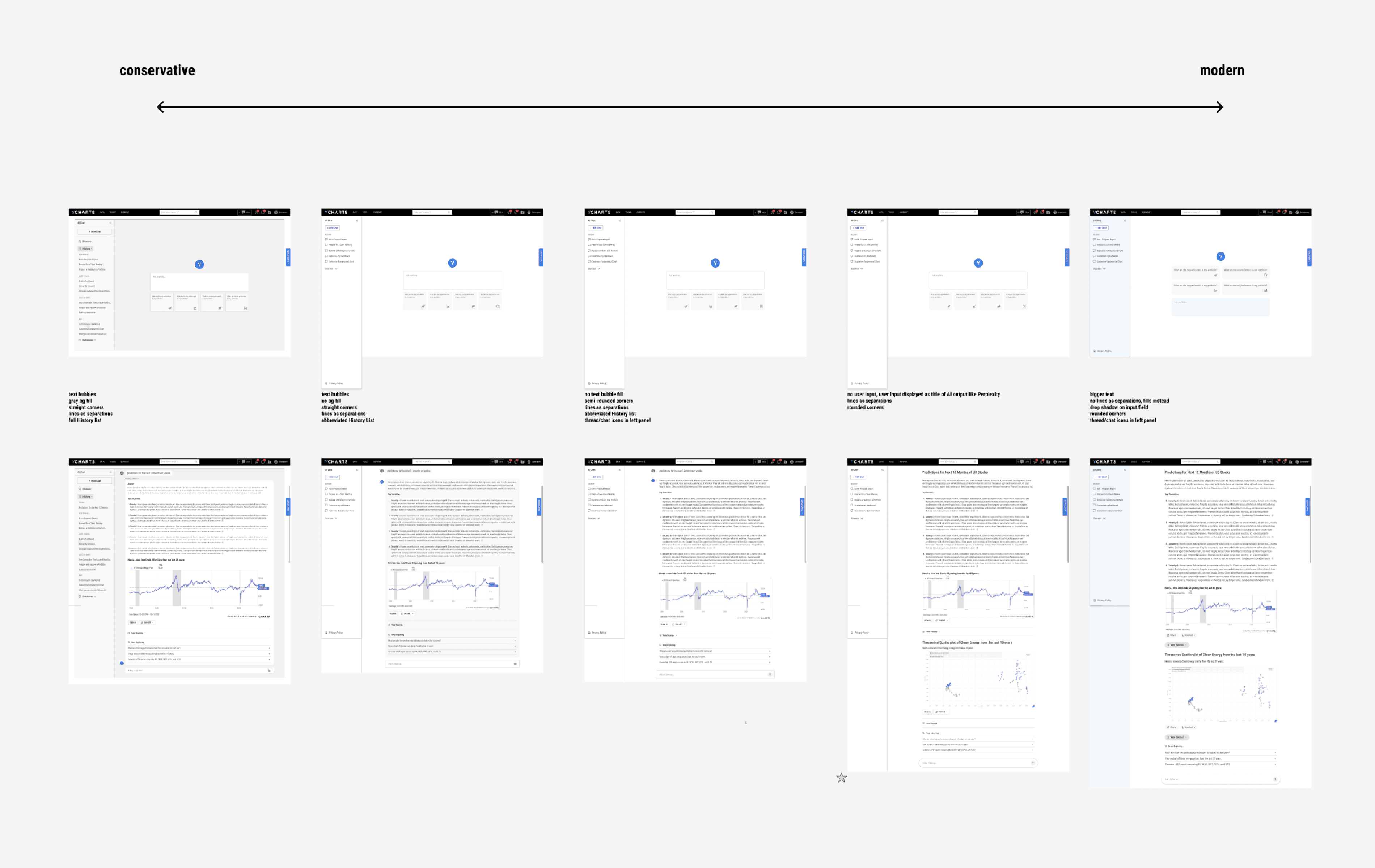Navigating how far we would diverge from our legacy design system resulted in various design directions ranging from conservative to modern interface designs.