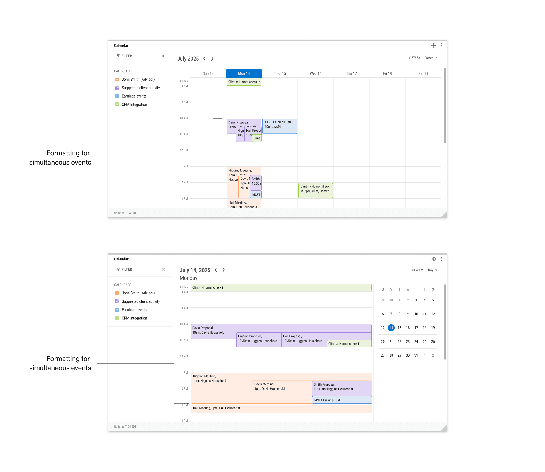 week (above) and day (below) calendar view formatting