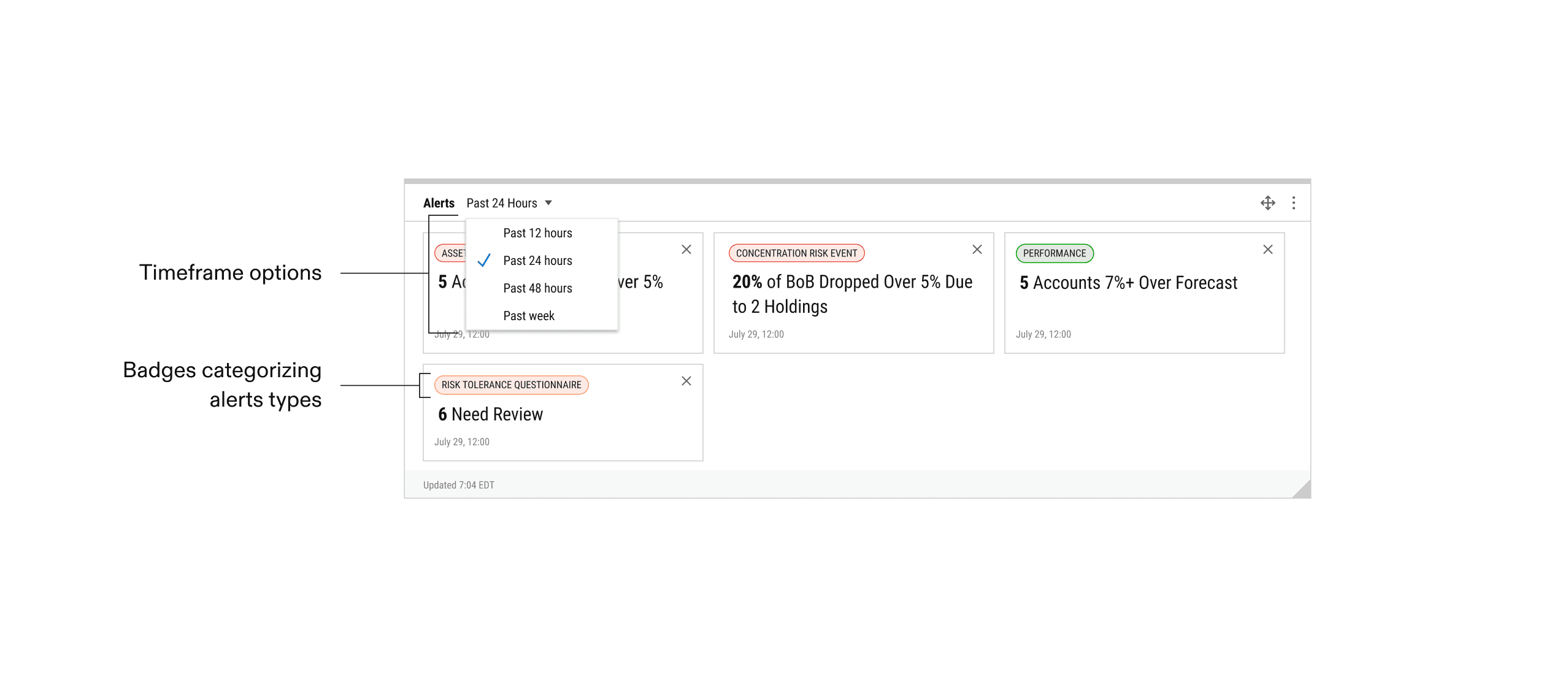 We decided to leverage the alerts module to interact with the book of business, creating an organic workflow for advisors to take action on high-impact events in their book of business.