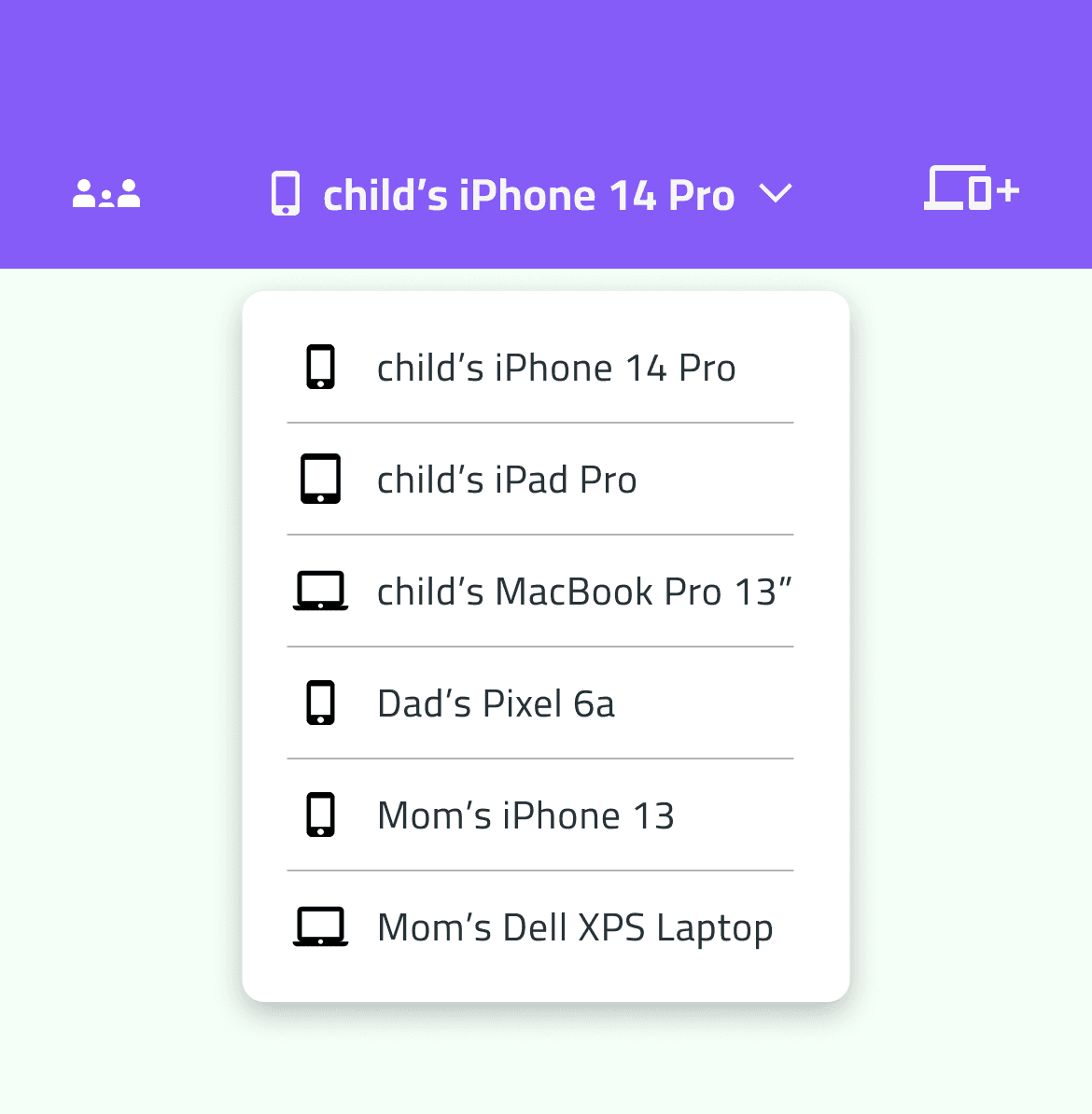 Apart from selecting individual devices to monitor, key features of Family Mode include:
