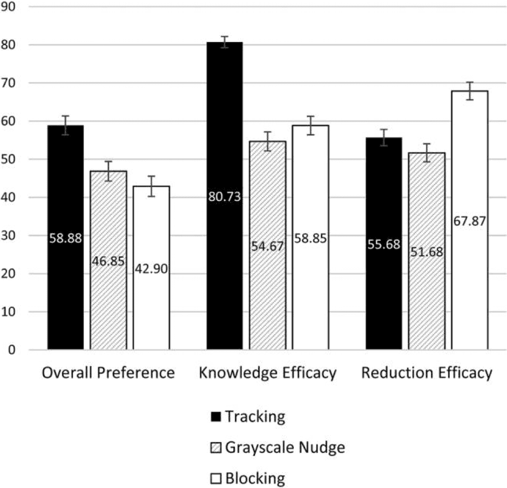 Despite knowing that an informational tracking app is not most effective for usage reduction, consumers evaluate it more positively than a coercive (blocking) app or a digital nudge app