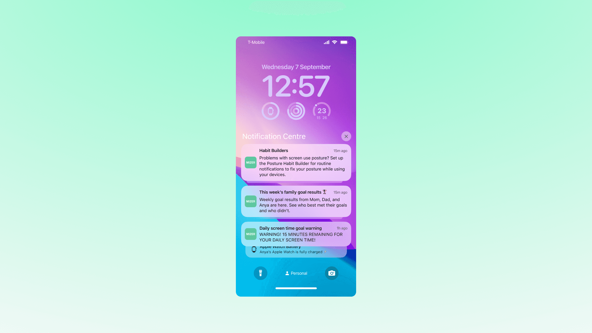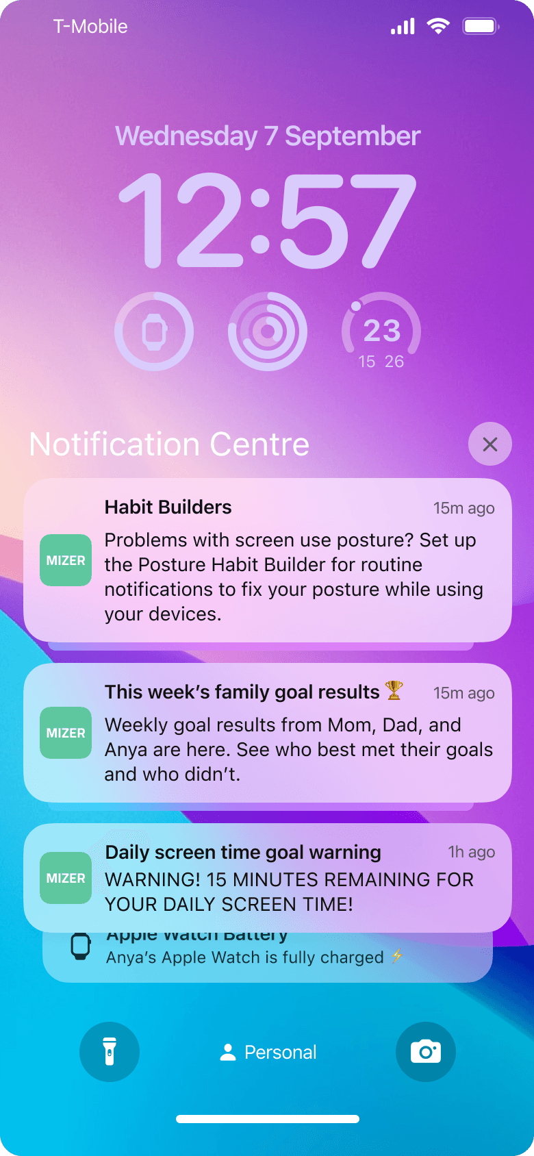 routine nudges to fix your posture or eye-to-screen distance (if respective Habit Builders enabled)